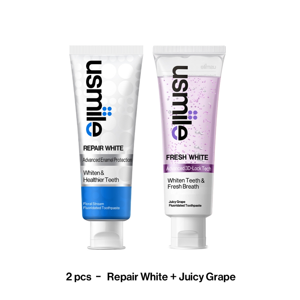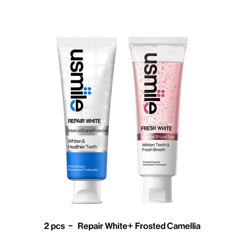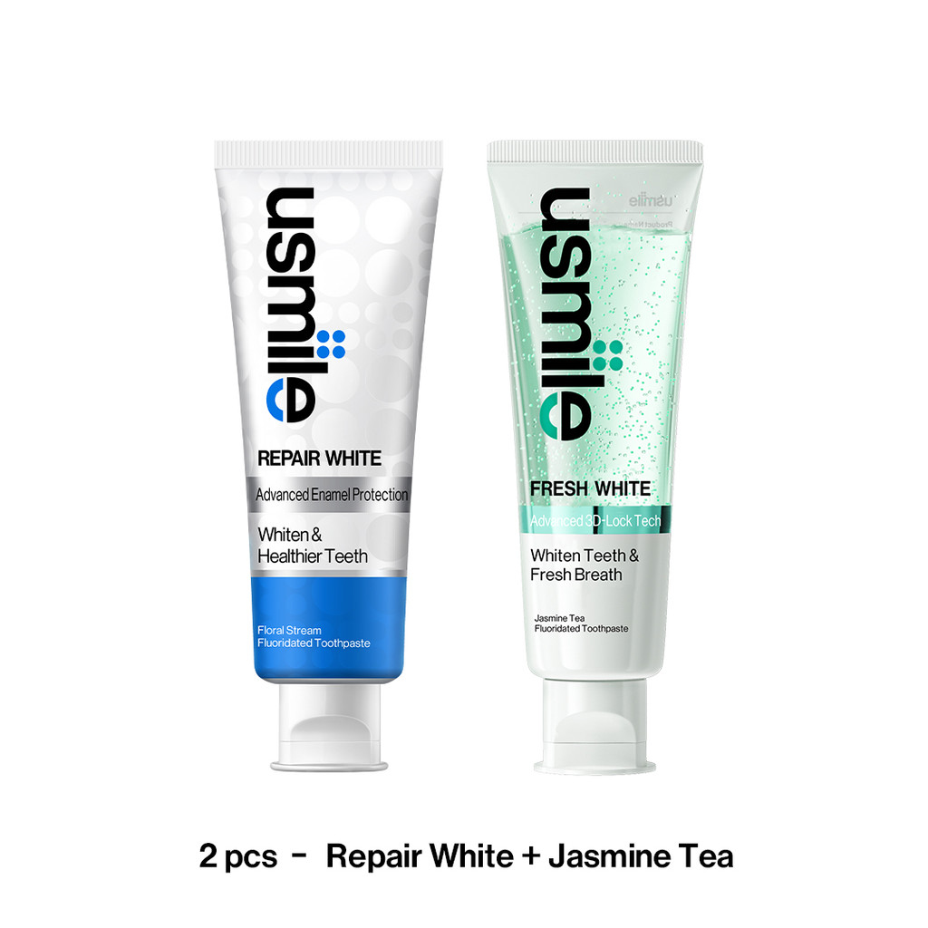 usmile Whitening Toothpaste, Fresh White 110g and Repair White Toothpaste 100g , Stains Removal & Enamel Repair