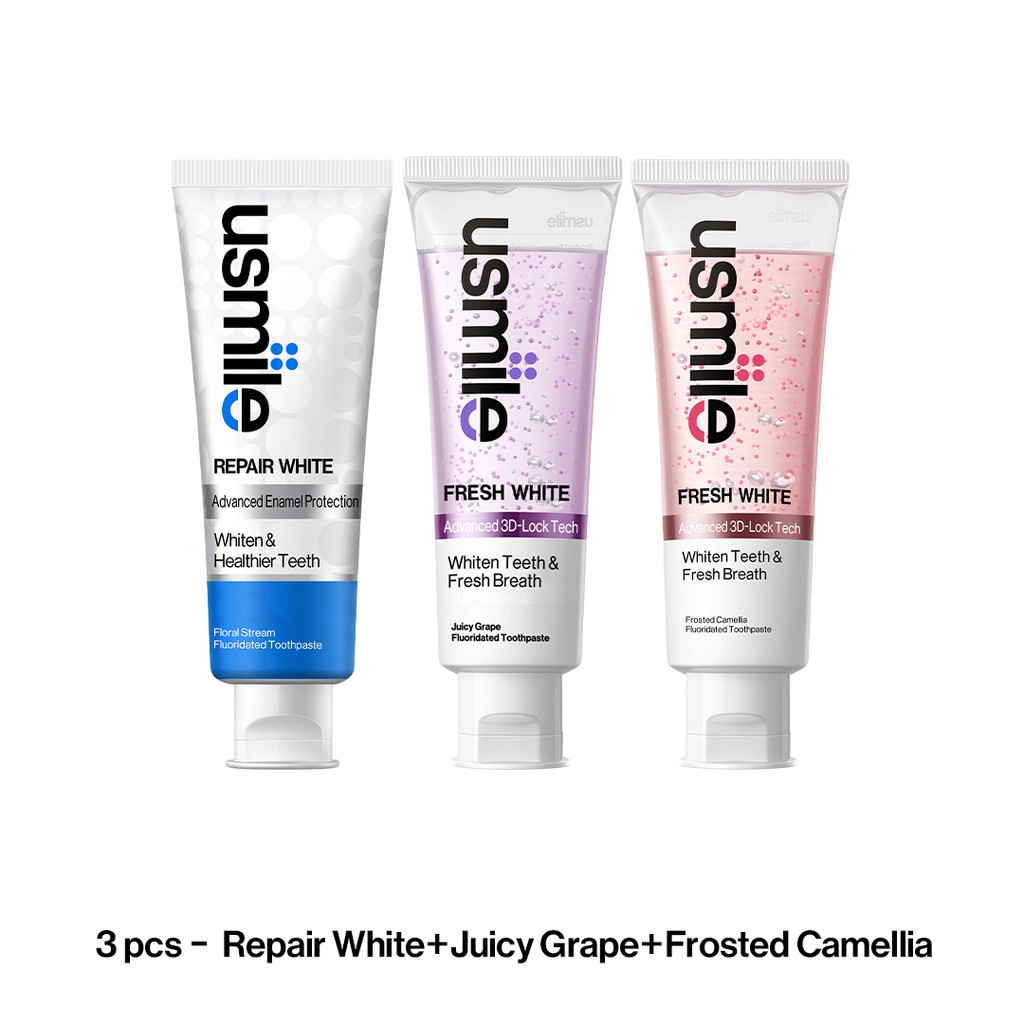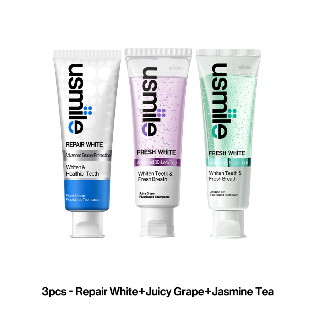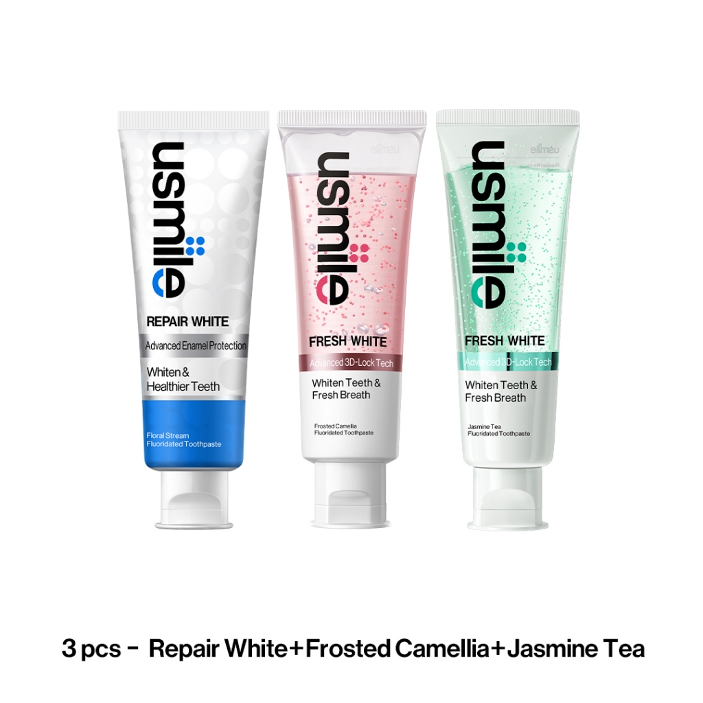 usmile Whitening Toothpaste, Fresh White 110g and Repair White Toothpaste 100g , Stains Removal & Enamel Repair