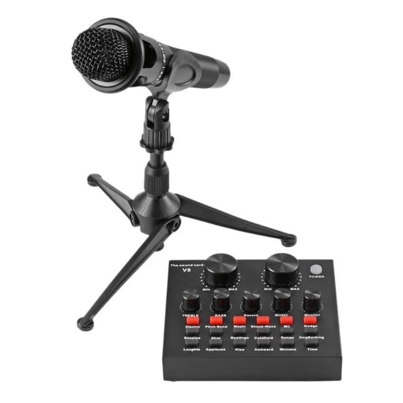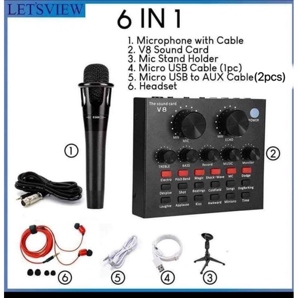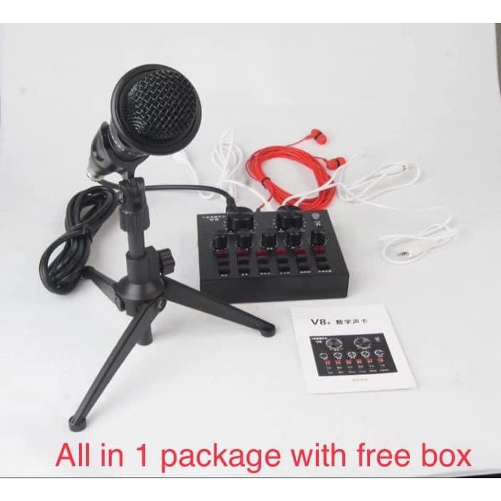 v8 soundcard set with condenser mic and stand hard case and cables ahshop