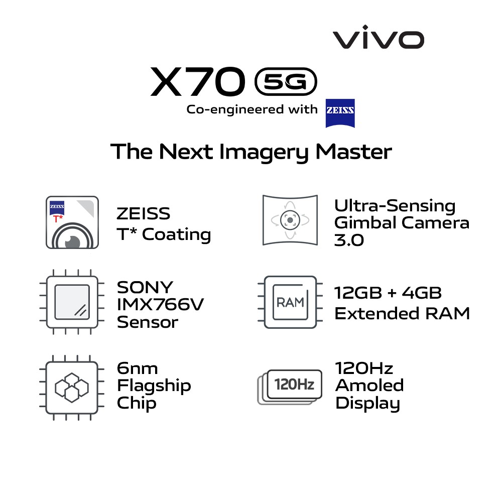 【SALE!】vivo X70 5G, 12+4GB Extended RAM, 256GB ROM, Gimbal Camera, Smart Phone