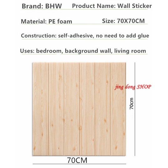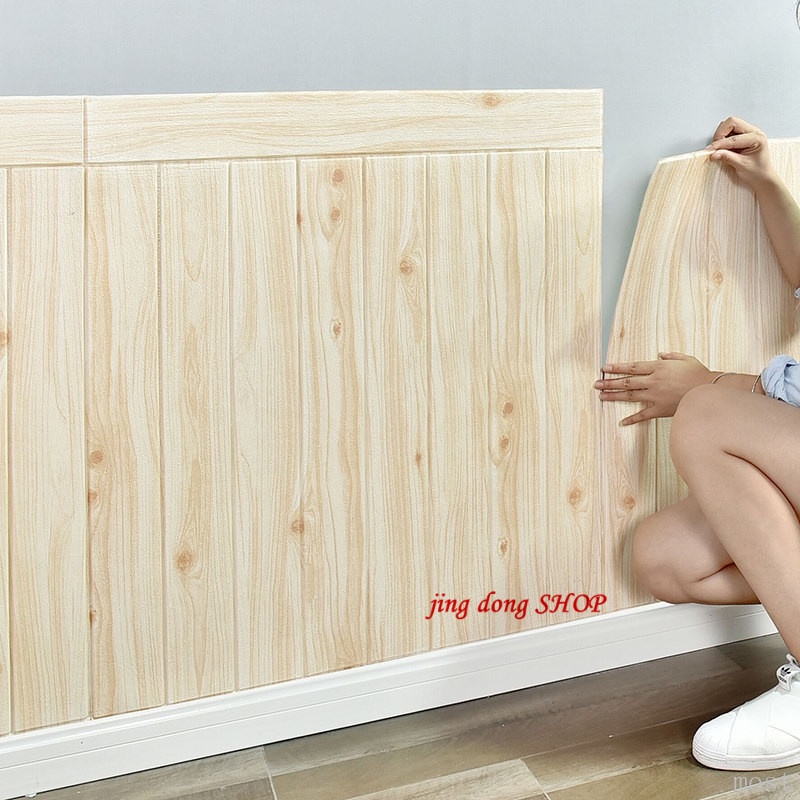 wallpaper sticker wood design 3d foam wall decor self adhesive water proof sticker for bedroom 70X70