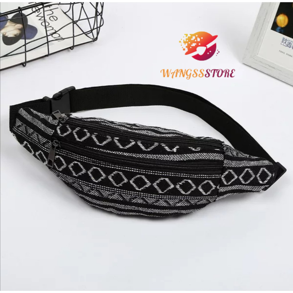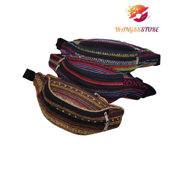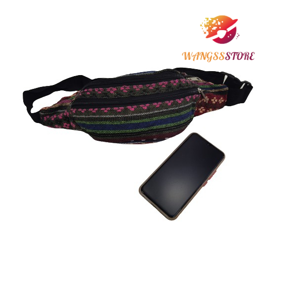 wangssstore [3BB] BELT BAG ETHNIC NATIVE National material waist bag w/3zipper BAGUIO