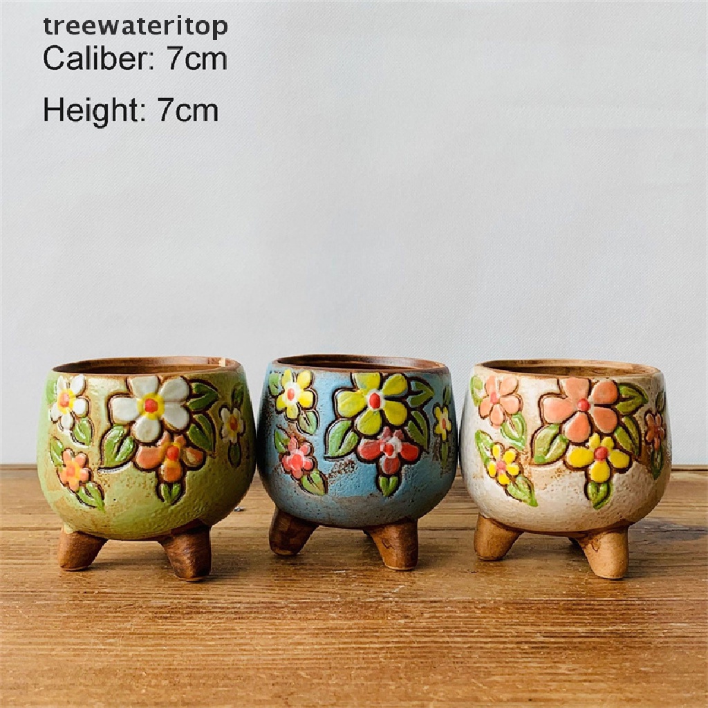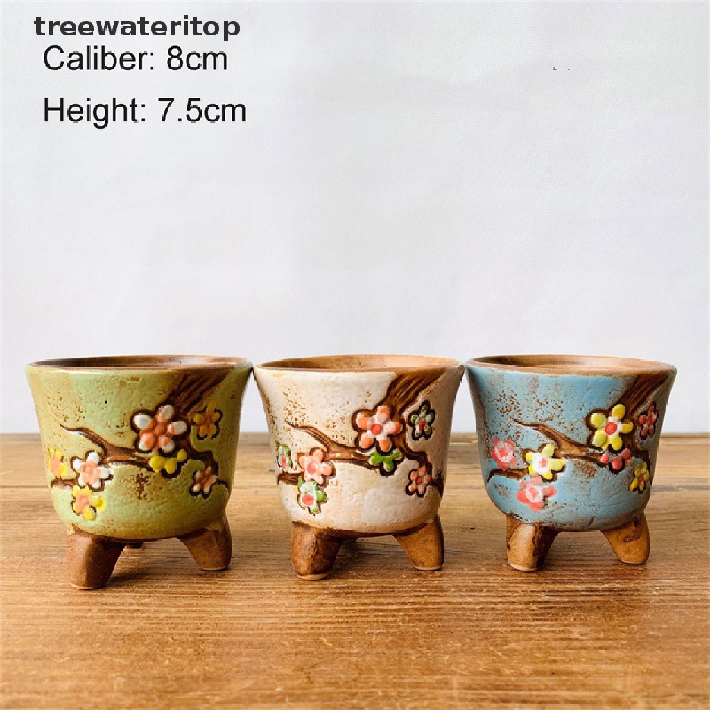 wateritop Korean Simple Fleshy Flower Pot Ceramic Hand-ed Fresh Thumb Pot Coarse Pottery Permeable Pot Peach Egg Flesh Flower treewateritop
