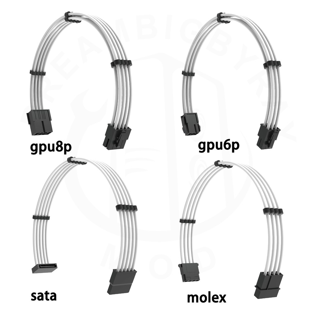 white color soft silicone extension cables for PC atx cpu gpu 24pin cords