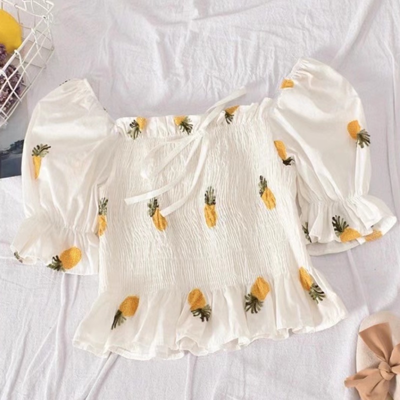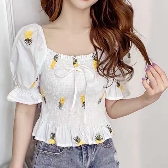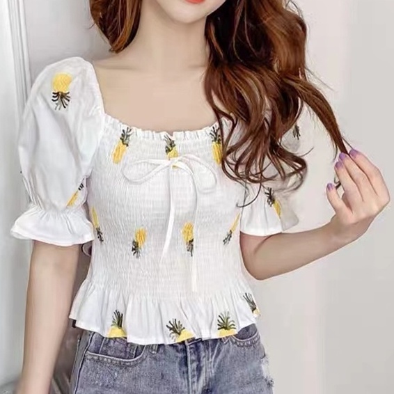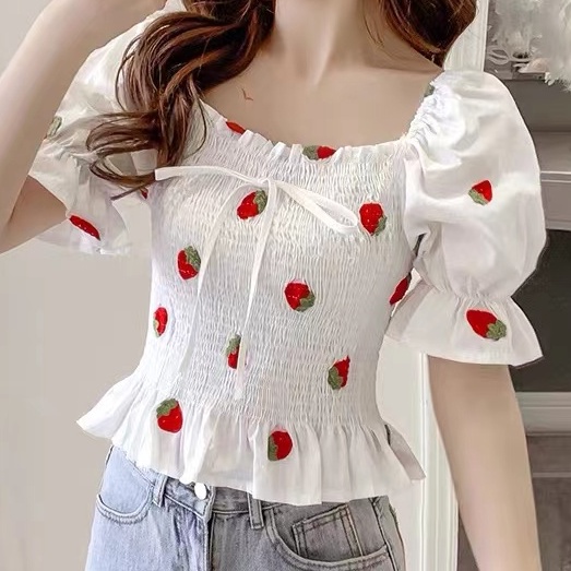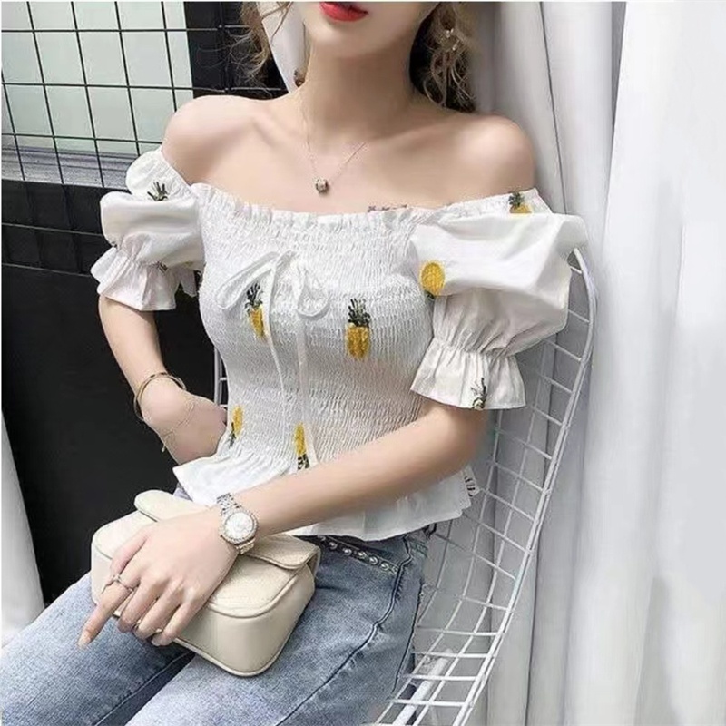 white tops for women korean top formal puff short sleeves women's off shoulder crop top for women