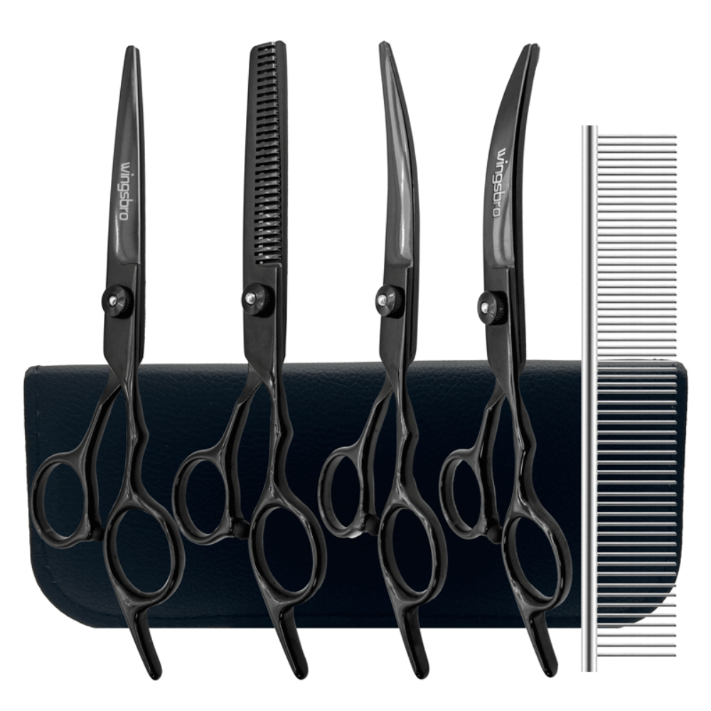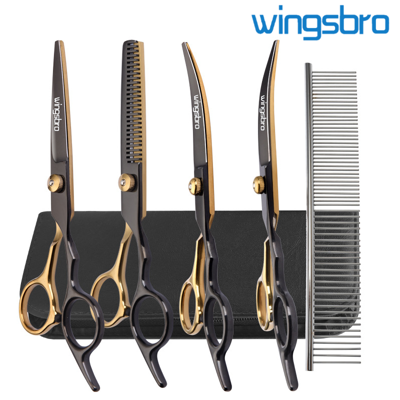 wingsbro 6.5 Inch Pet Dogs Grooming Scissors Stainless Steel Cat Hair Thinning Shear blackgold Pet Shop Scissors Kit