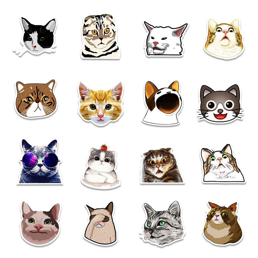 xs675-50 pcs kitten expression graffiti waterproof sticker