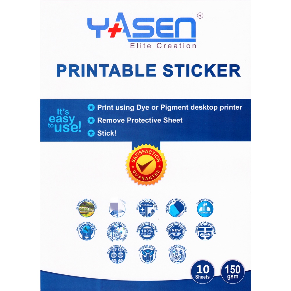 yasen Glossy Vinyl White Sticker - Inkjet printable A4 size
